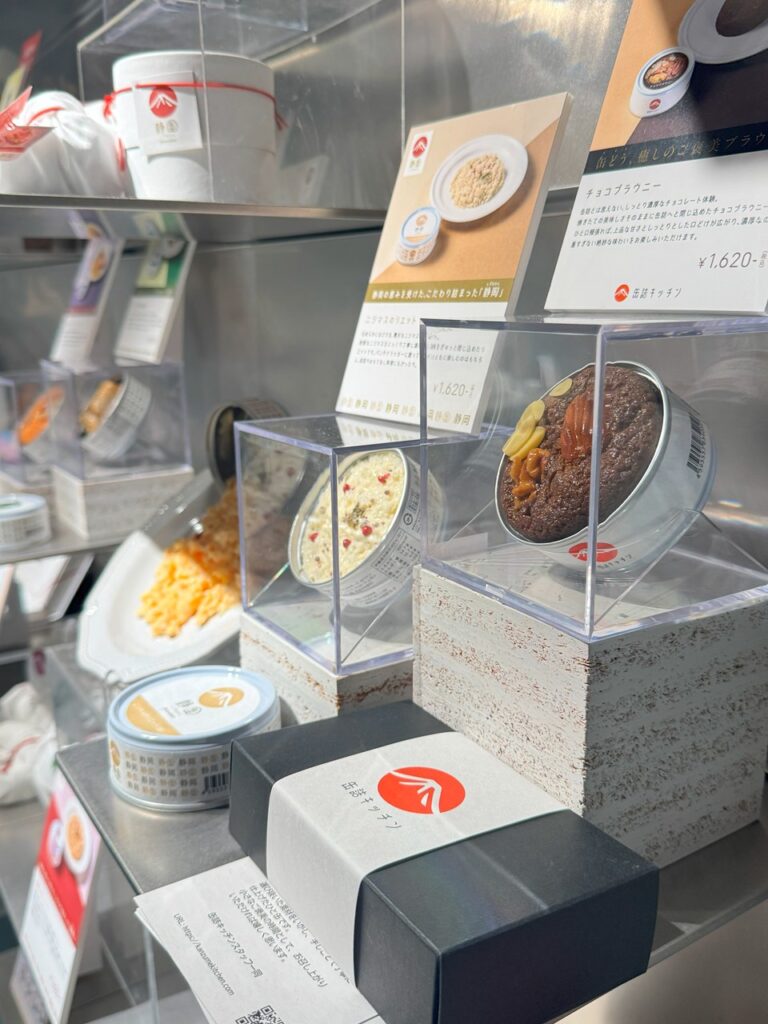 店頭では、缶詰の中身は本物そっくりに仕立てた食品サンプルにてご覧いただけます。
